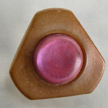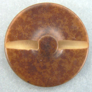 ![]() (Vi-22) Two-piece high profile, brown/black vegetable ivory button. Brown cap has a hairline crack. Small 5/8" across base, about 1/2" high. $3.00 as-is |