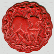 ![]() Back view. Chinese Zodiac Imitation Cinnabar Buttons (polyester blend, authentic cinnabar color). These are approximately 1-1/4", some are large, a few might be medium. |