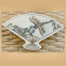 ![]() Dragonfly insect, scrimshaw etched, fan shape bone button. Lg. approx. 1-1/2" |