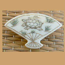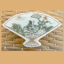 ![]() Tortoise, scrimshaw etched, fan shape bone button. Lg. approx. 1-1/2" |
