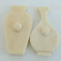![]() Nicely finished back view of scrimshaw etched vase shape bone buttons shown below. Fan shapes have a similar back. |
