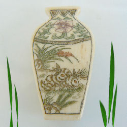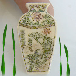 ![]() Scrimshaw bone vase shape, frog. 1-1/2" |