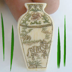 ![]() Scrimshaw bone vase shape, Zebra. 1-1/2" |