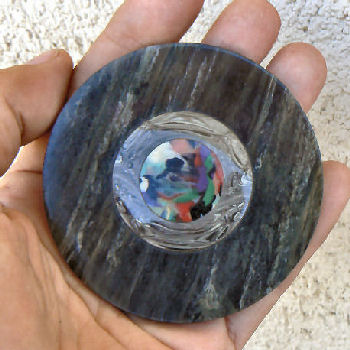 ![]() (LgPlast-14) Greyish slate (lighter than this image) lightly etched semi-matte w/shiny carved design. Extra large, just a hair under 1/3/4". Closer view click here. Only ONE piece available. $5.00 |