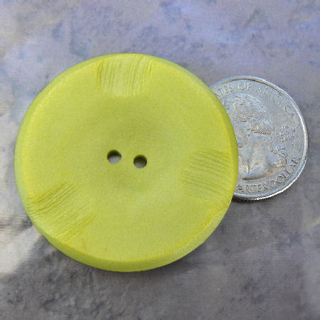![]() (LgPlast-1) Lime large carved detail smooth satiny matte finish 1950's era plastic sew-thru coat button. Large bit over 1-1/2" (40mm). Mouse over, or click above image for another view. (4pcs. avail.) $8.00ea. |