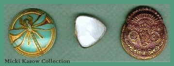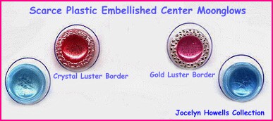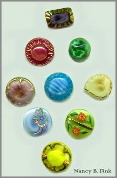 Here is the first of 4 pages studying "Moonglow" glass buttons. They are a favorite with collectors. Moonglows were made in W. Germany and Czechoslovakia, showing up in the U.S. in 1953. They were made into the 1960's, but eventually all glass buttons fell out of favor and plastics replaced them as being more practical. Some Moonglows are made today for collectors and imported from the Czech Republic. Collectors crave these beautiful buttons made of light-gathering "satin glass" cased on top with clear/colorless glass. To be a moonglow, there must be "some amount" (per NBS classification notation) of clear/colorless glass on top. Here are some of the best moonglows you'll ever see! Photos provided by members of the ButtonBytes On-Line Button Club. Please visit their sites linked below and don't miss three more pages of moonglow pictures! Want to buy buttons like these? Visit my Moonglow Glass Buttons for sale page, click here. |