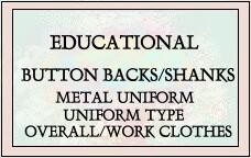This page shows the backs of various buttons which can help us identify them as civilian, work/overall and work usage by construction, materials and back marks. Included are designer/vanity/blazer, uniform-look, work/overall and other look-alike types to help you identify the differences. See link below back to Button Info. Index to see some face designs of similar types (uniform, work/overall). |