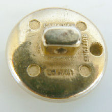 ![]() (Air-3) Iran Air brass uniform button. Gaunt London back mark. Coat size 23mm (over 7/8"). A little surface wear in one area, not glaring. SALE $12.00 (Was $15) |