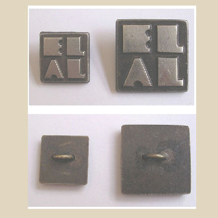 ![]() (SOLD) Hard to find vintage 1970's Israel's Elal airline button. Good for competition for (1) Shape (square); (2) One-piece construction AND if judges know this airline they might give a rarity point as well. Sold Out |