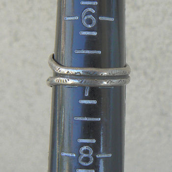 (1) Cut a thin strip of paper (2) Wrap the paper around your finger. Make sure the paper is below the joint of your finger and close to your knuckle. (3) Mark the spot where the paper meets and measure the distance with your ruler. (4) Use the following chart to determine your ring size. Rings also come in half sizes, the measurements of which, of course, will fall somewhere in between the whole sizes. Size 4: 1-13/16" Size 5: 1-15/16" Size 6: 2-1/16" Size 7: 2-1/8" Size 8: 2-1/4" Size 9: 2-5/16" Size 10: 2-7/16" Size 11: 2-9/16" Size 12: 2-5/8" Size 13: 2-3/4" Size 14: 2 7/8" |