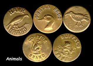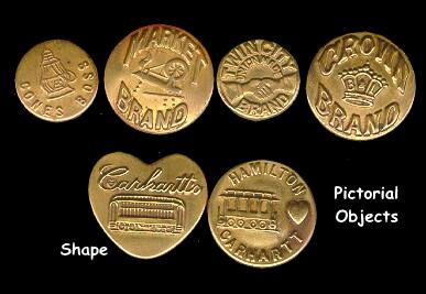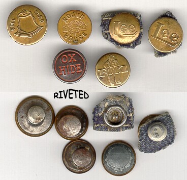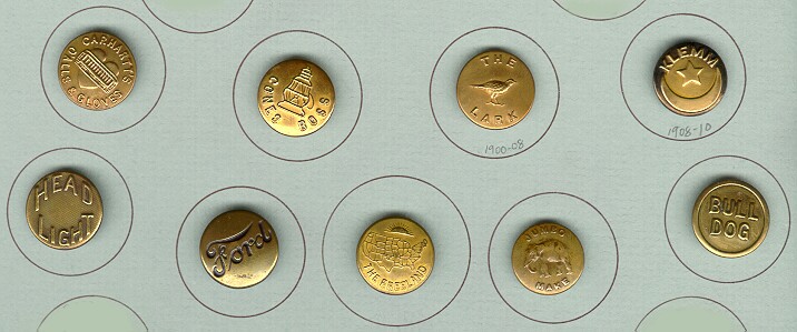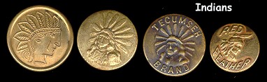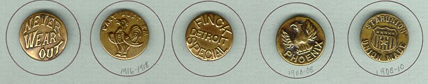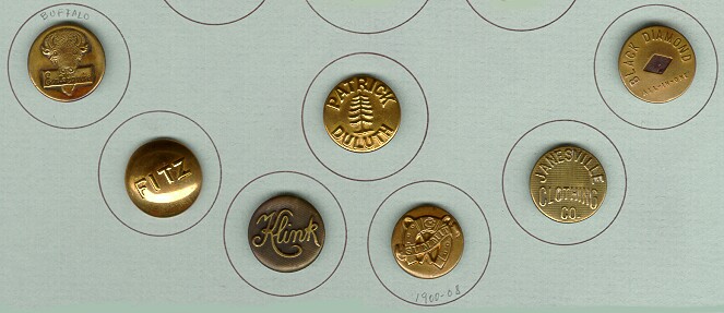 This is an information page covering vintage & antique work clothing overall buttons. A wide range of subject matter can be found on these charming formerly utilitarian buttons. Worthy of a second look by button collectors, especially those who like to compete. If you wish to buy buttons like these, click on the CC's Buttons link below the images, then visit my Metals Button page. I have some of these for sale on a fairly regular basis. These buttons range in age from the early 1900's to the 1930's. There are also modern examples, although those are not pictured here. Comments or questions? Click here to e-mail me: carolc@vintagebuttons.net